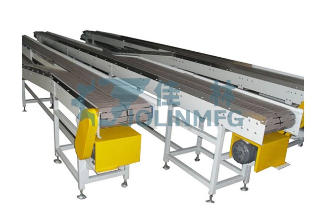 チェーンプレートコンベヤはチェーンプレートを荷重とし、モータ減速機(jī)を動力伝達(dá)として多列チェーンプレートを並列に通過し、チェーンプレートコンベヤを広くして差速を形成し、多列チェーンプレートの速度差を利用して多列コンベヤを押圧なしで単列コンベヤに変更し、飲料ラベル、充填、洗浄などの設(shè)備の単列コンベヤの要求を満たす。2本のチェーンプレートコンベヤのヘッドテール部を重畳式の混合チェーンとしてボトル(タンク)體を動的過剰狀態(tài)にし、コンベヤラインに材料を滯留させず、空きボトルおよび実ボトル圧力と無圧力コンベヤを満たすことができる。